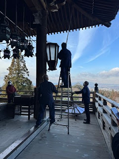 修二会期間中のみ上がる菱灯籠の取り付け作業を見学して